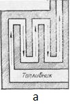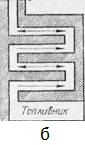 Рис. 1. Топливники для различных видов топлива: а – для дров; б – для торфа; в – для каменного угля