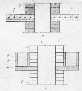 Рис. 4. Распушки: а – из железобетона; б – в виде ящика с песком: 1 – дымоход; 2 – кирпич; 3 – арматура; 4 – бетон; 5 – стенки ящика (асбоцемент, бетон); 6 – песок