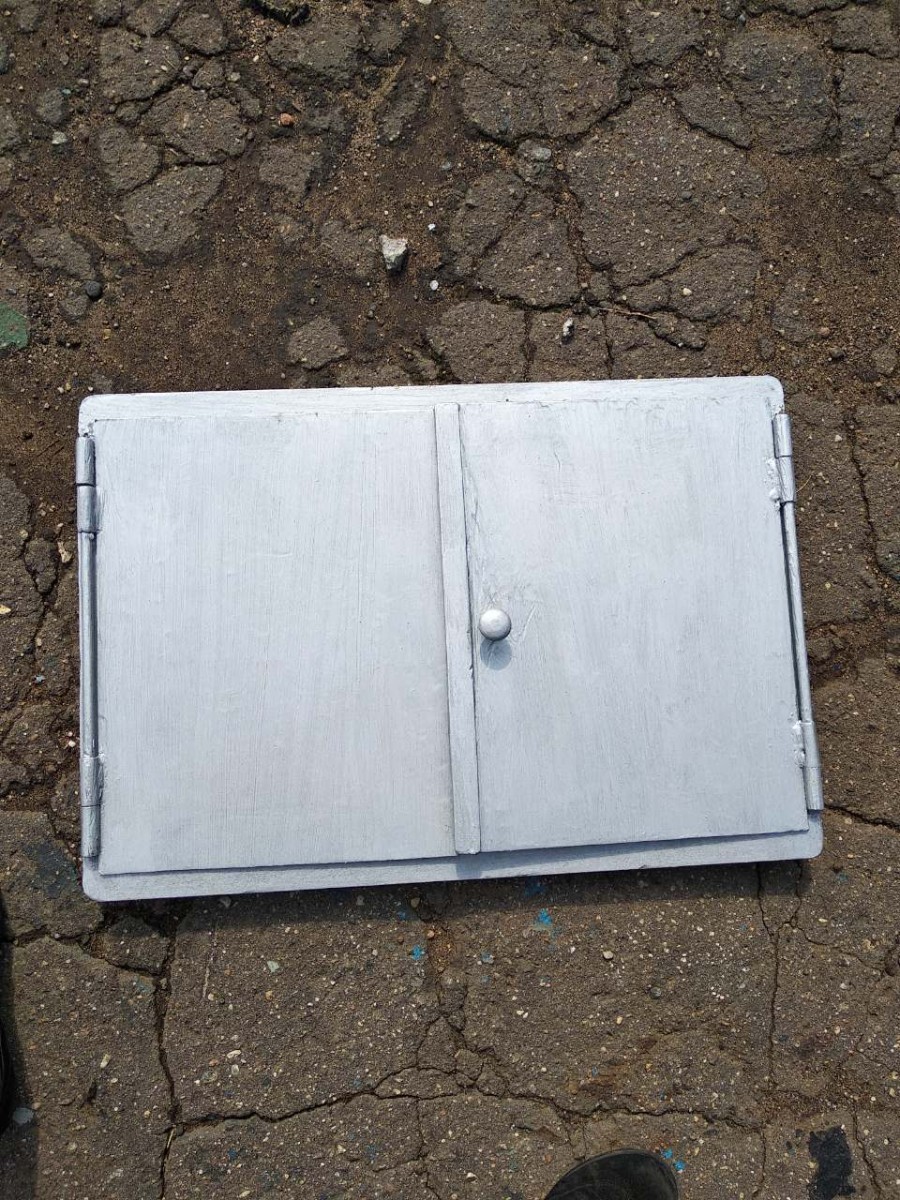 Высота каждой створки 430 мм, ширина 330 мм, толщна 2 мм