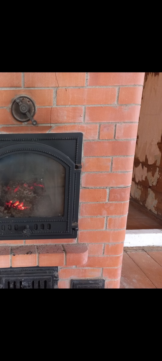 Решил потрохи протапить дровани, посмотреть как греет, вкинул 7-9 тонких сухих полен, они ещё не догорели до конца как печь лопгула в круг по швугоризонтально, а затем появились маленькие трешены в швах и керпичах вертикально.керпич ложили на ЭкоБут