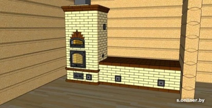Камино-печь с лежанкой, плитой и щитком в Березино