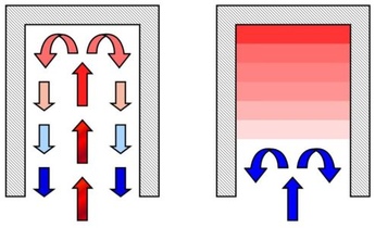 Колпаковые печи в отличие от традиционных (канальных) основаны на принципе свободного (естественного) движения газов. Движение горячих газов в самой колпаковой печи (колпаке) происходит не под действием тяги трубы, а под действием собственной силы тяжести газов.Достоинства таких печей — простота обслуживания. Не требуется чистки протяженных каналов — вся сажа падает на дно колпака, откуда легко удаляется через прочистные дверки. А также более высокий КПД и нижний прогрев.
