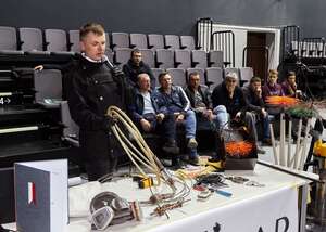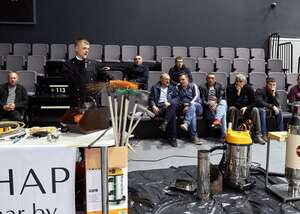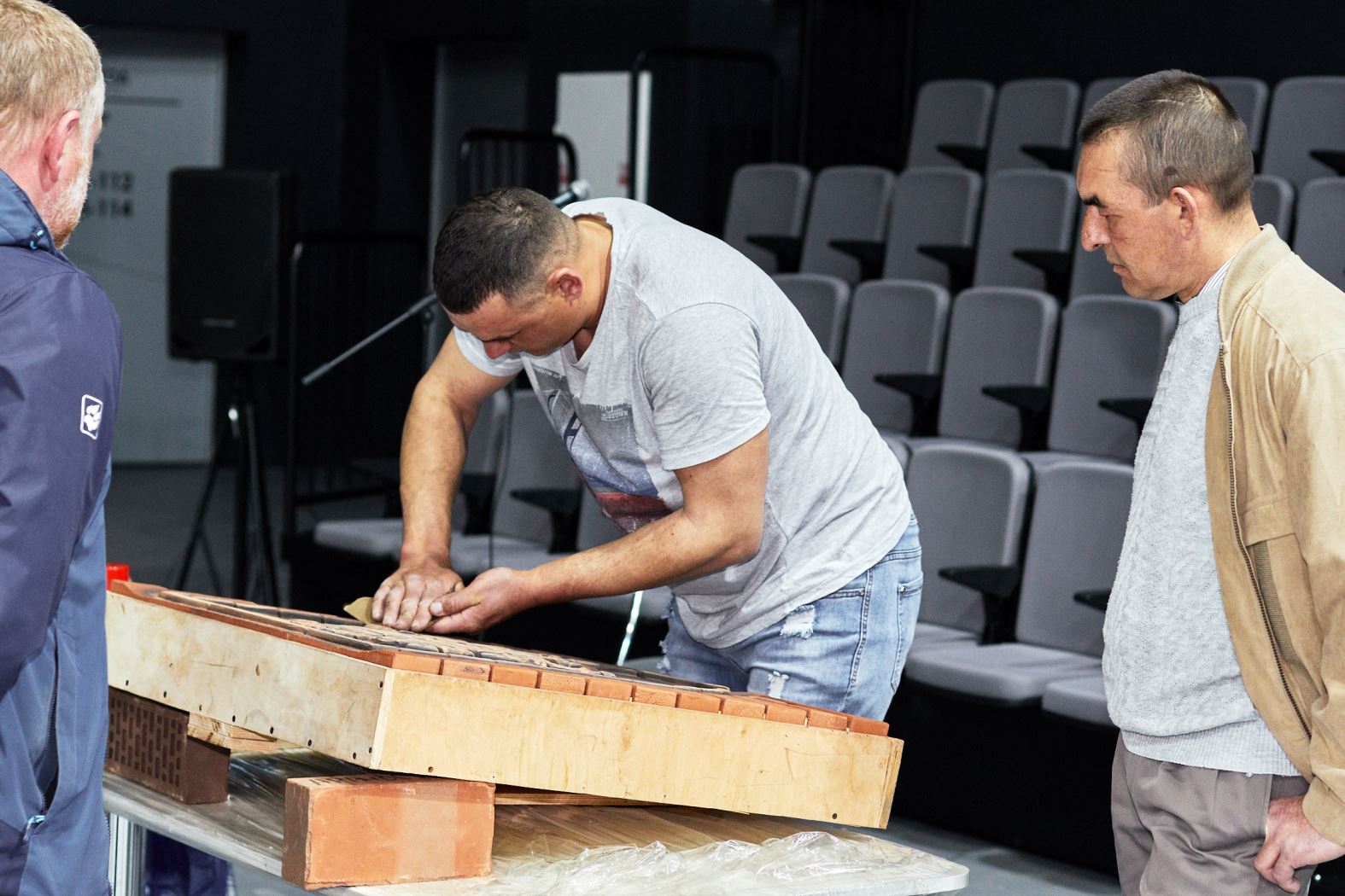 19 апреля в рамках выставки прошли значимые мероприятия для печного сообщества нашей страны. Это мастер-класс по художественной обработке кирпича от участника БелПО Валерия Нагорного и шоу-мастеркласс по современному трубочистному делу от председателя Печного Общества (а по совместительству руководителя компании КАМИНАР) Дениса Бабины. Валерий Нагорный представил, в общем-то, новое для Беларуси направление – художественную обработку кирпича на примере изготовленного исторического герба. Большое панно с Погоней было выточено из кирпича бренда КС-КЕРАМИК (Кирово-Чепецкий кирпичный завод), который впервые появился на белорусском рынке. Валера подробно рассказал об инструментах используемых для обработки, общих приемах и технике резки и даже поделился своими профессиональными секретами.