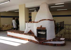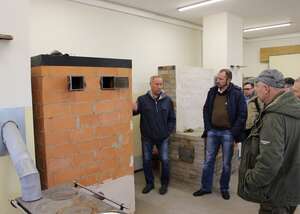Утром следующего дня участников Семинара ждал автобус, на котором мы поехали в учебно-производственный Центр “КАМИ”. Сергей Иванович Серегин, руководитель Центра провел экскурсию по новому учебно-испытательному корпусу и производственным цехам, где производится резка кирпича и камня, металлообработка, покраска, художественная гравировка, производство печных кладочных смесей и изделий из термобетона. За последние несколько лет вид производственного Центра “КАМИ” преобразился. Здания красиво отделаны, производится благоустройство территории, обновляется автопарк. Затем экскурсия переместилась в печной магазин “КАМИ”. По нашим представлениям, это рай для печника! В нем представлены всевозможные материалы для строительства и обслуживания очагов, и готовые изделия в виде печей, топок, дымоходов. Сам магазин занимает большой торговый зал и окружающие здание складские помещения, разрисованные в сказочные сюжеты на тему огня. По пути от входа нас встретила колонна кирпичных печей разного размера и назначения, украшенных резьбой и различными декоративными элементами. Это типовые печи, разработанные конструкторами Центра “КАМИ”. Они производятся в виде печекомплектов. Они представляют собой выпиленные на станках и уложенные на поддонах пронумерованные порядно элементы печи. Печники-монтажники Центра быстро возведут из них печь, а менеджеры подготовят полный пакет документов на произведенные работы и выпишут гарантийный талон.