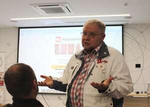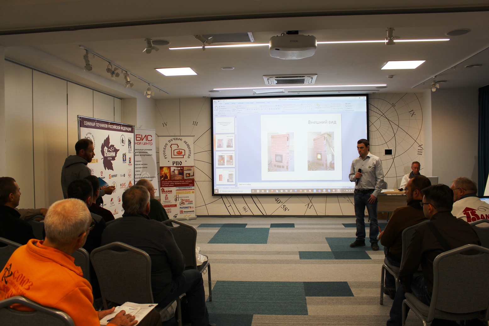 На Семинар приехал Евгений Гороховский из Санкт-Петербурга, представляя компанию ЛСР. Это одна из самых крупных компаний в России по производству керамического кирпича, которая владеет несколькими заводами. В презентации была представлена линейка кирпича, который выпускает концерн. Поступило предложение использовать не только традиционный лицевой и рядовой кирпич, но и клинкерные изделия для тротуаров, ступеней и брусчатки, с целью расширить многообразие вариантов отделки печей и каминов.
