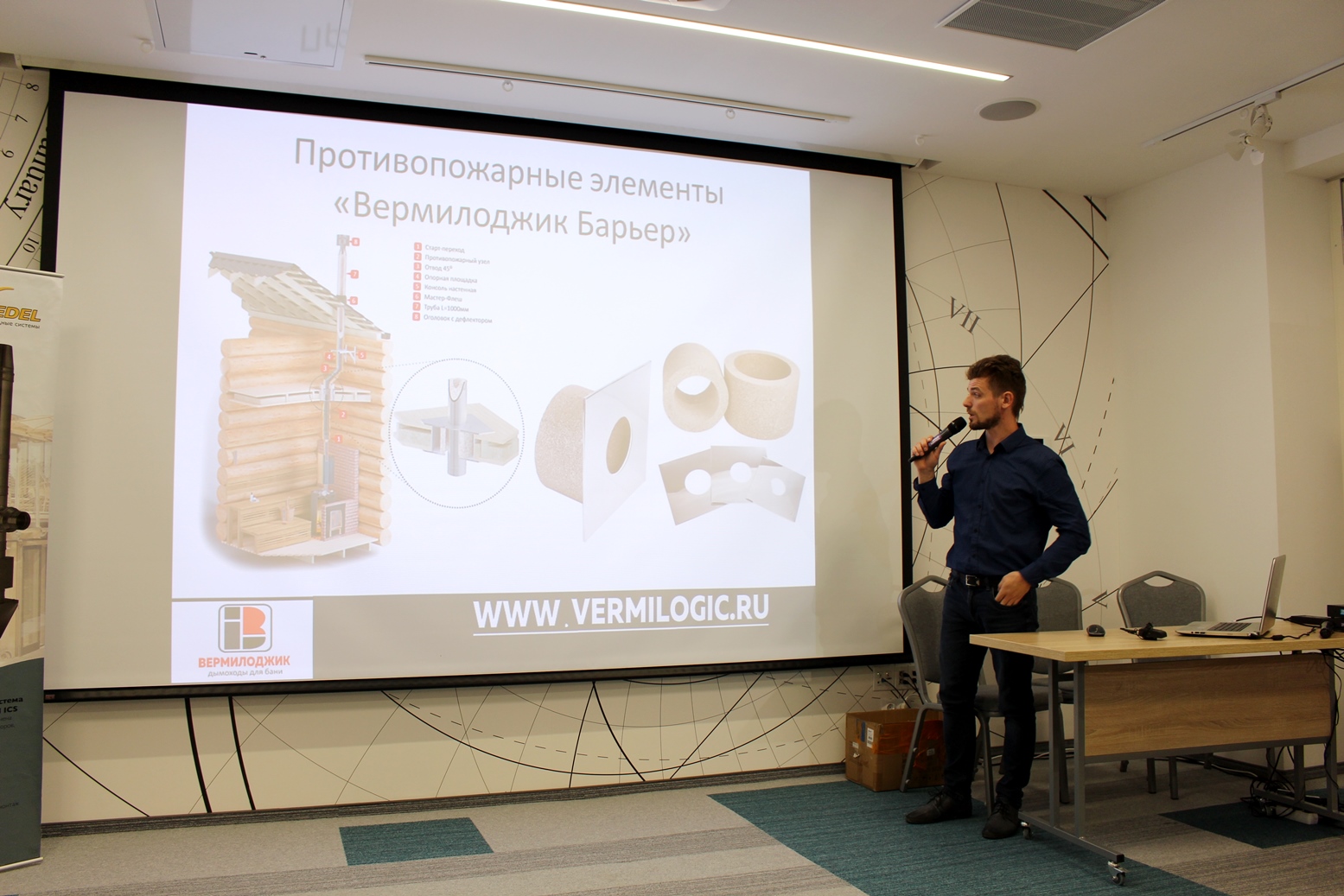 Второй день Семинара начался с доклада директора компании “Вермилоджик” (ООО “Новохим”) Станислава Визе “Применение вермикулита при производстве дымовых труб и разделок в современном печестроении”.