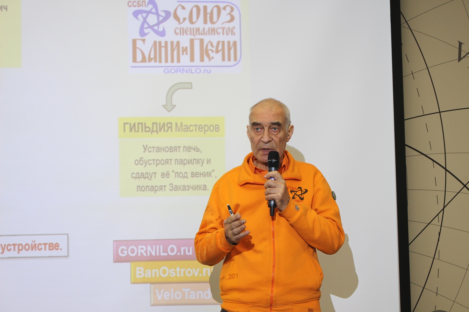С интереснейшим докладом, о принципиально новом взгляде на бани, выступил Ляхов Владимир Николаевич, Председатель московской гильдии Печников и банщиков. Он наглядно, на конкретных примерах, рассказал, как много ошибок допускают профессиональные банщики и любители пара, зачастую просто следуя традициям. Все традиционные каменки, если разобраться досконально, имеют те или иные недочеты, которые могут сделать процедуру парения и в вовсе неполезное для здоровья занятие. Так чугунная или каменная закладка, используемая в банных печах с проходящим пламенем, постоянно разрушается, и парильщики в банях такого типа постоянно дышат взвесью твердых частиц, попадающих в парилку вместе с паром. В качестве решения, он предложил конструкцию банных печей нового поколения, которые производят перегретый пар, температура которого достигает +400 градусов, который дозированно подается и распределяется в пространстве парной. Такие банные печи нового поколения называются “Скоропарки” или “Аква-печи”. В своей работе Владимир Николаевич совместил знания кандидата технических наук и факты из медицины и физиологии.