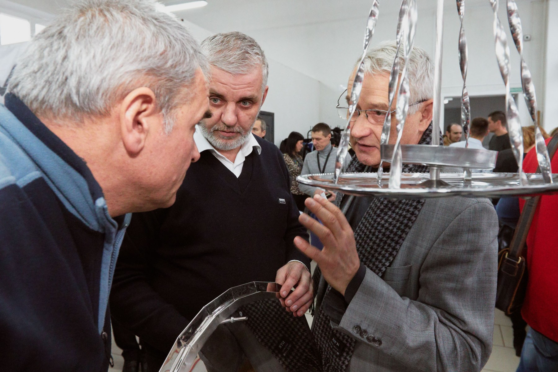 Второй день был так же насыщен. Он начался со знакового события для печного сообщества Беларуси – презентации Белорусского печного общества (БелПО). Председатель общественного объединения БелПО Денис Бабина рассказал о целях, задачах и проделанной участниками объединения работе. В целом, во второй день в программе преобладали доклады на технические темы. Андрей Пономарев, член УС “Гильдии Печников Санкт-Петербурга”, выступил с обширным докладом “Теплотехнические испытания теплоемких печей”. Минский печник-инженер Игорь Задорожний на большом экране продолжил тему своего круглого стола – “Дизайн арок в печном деле. Приспособления для расчета арок и нарезки клиновых элементов под станок и болгарку. 3D арки”. Особенно впечатляющей была презентация уникального приспособления для разметки кружал, на основе круговой линейки русского математика Чебышева. Это авторское изобретение Игорь дарит миру, обнародовав расчеты и чертежи!
