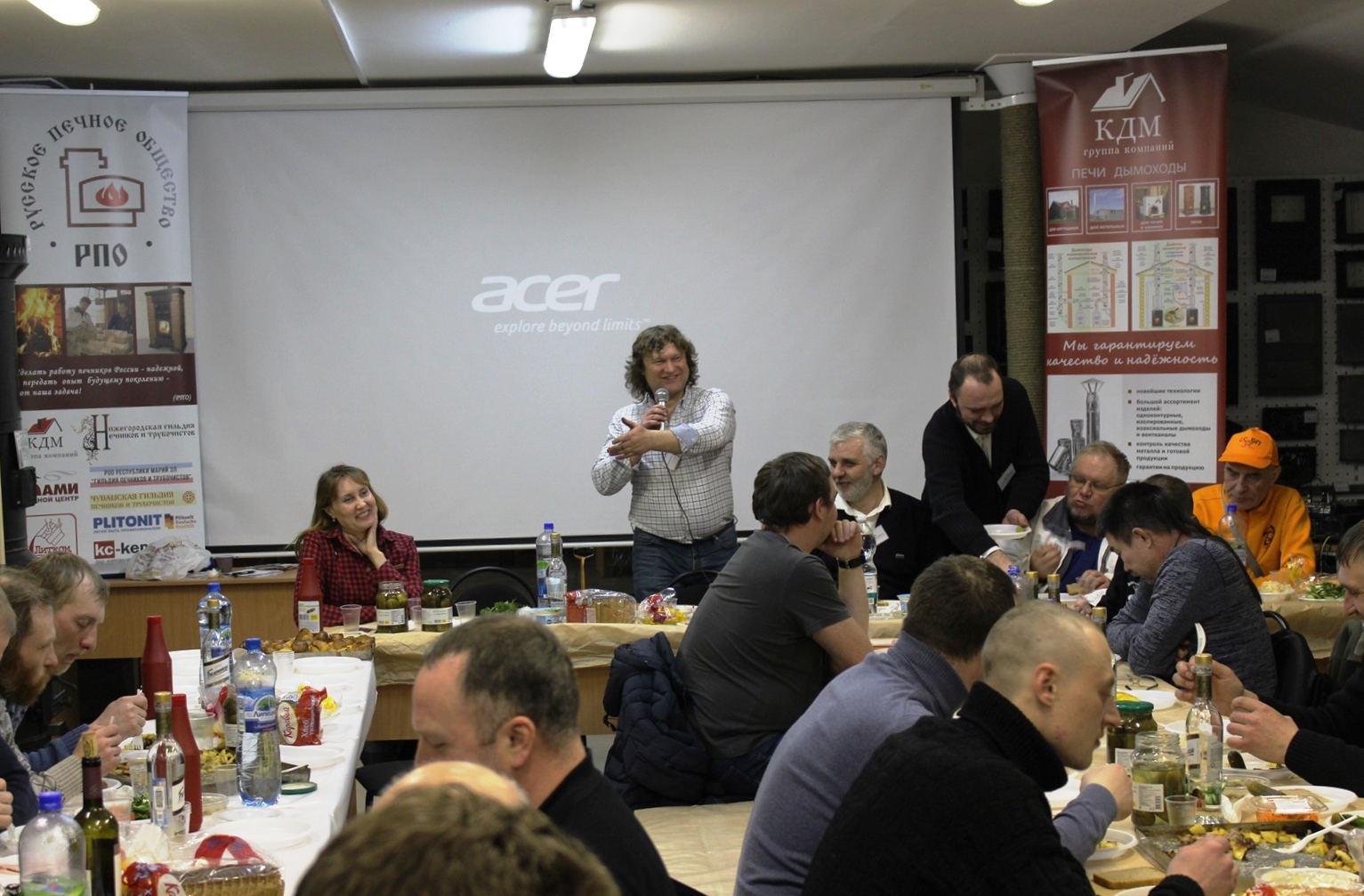 В субботу 17 марта в Нижегородском Печном Центре состоялось официальное открытие семинара Русского Печного Общества “Нижегородское Вече – Весна 2018”, который начался с вступительного слова Председателя РПО Серегина С.И. В этот день были зачитаны доклады и прошли выступления представителей государства, общественных организаций и производителей материалов используемых в печном деле. Все доклады были очень содержательными и несли новую информацию, но особенно хочется отметить выступления исследователя Шевякова В.В “Новые направления в создании бытовых печей. Комбинированный топливник, без колосниковой решетки”, председателя Нижегородской Гильдии печников Александра Фомичева, председателя РПО Серегина С.И. и представителя МЧС “Создание добровольной пожарной дружины при ВДПО. Совместный опыт работы”, Зюкина С.В. “Банная печь с обращенным пламенем”. Завершился день торжественным банкетом с выступлением творческих людей, который прошел в помещении Нижегородского Печного Центра “Дятловы горы”.