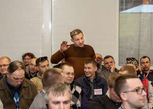 После мастер-класса состоялась Белорусская Конференция Печников на которую приехали мастера не только нашей страны, но и представители России. Зал на 70 человек еле вместил всех желающих. С тематическими докладами выступили печники, производители и представители общественных организаций Беларуси и России.