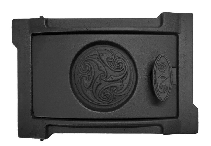 Дверка топочная уплотненная. Оригинальный дизайн, дверца имеет выпуклую радиальную форму. Очень симпатично смотрится на теле печи, за счет радиальной поверхности, дверца лучше излучает тепло в помещение. Оснащена "Замком автоматического запирания".