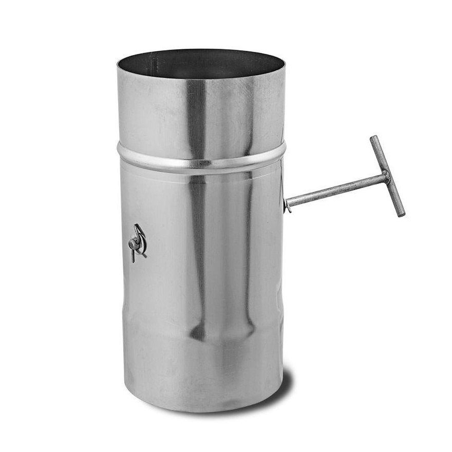 Заслонка поворотная ЗП производства «КДМ» представляет собой элемент стального дымохода, предназначенный для перекрывания просвета трубы и управления процессом горения. Она предотвращает циркуляцию горячего воздуха в дымоходе после протопки печи и позволяет сберечь тепло. Заслонка поворотная ЗП представляет из себя стальную трубу с внешним и внутренним раструбами, внутри которой расположена круглая пластина, соединенная с поворотным штоком и перекрывающая просвет дымохода. Снизу и сверху расположены фланцы с внутренним и внешним раструбом для соединения Заслонки поворотной ЗП с трубой. Внутренняя пластина имеет технологическое отверстие для того, чтобы продукты горения могли улетучится, в случае раннего закрытия заслонки. На место соединения Заслонки с дымоходом наносится термостойкий силикатный герметик для обеспечения газоплотности.