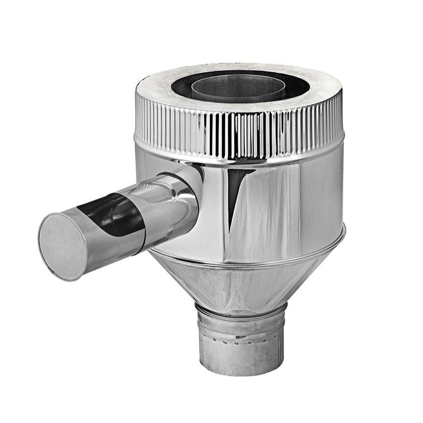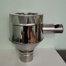 Внутренний контур Адаптера перехода с врезкой Ду 80 АПВ 80 вентилируемого производства «КДМ» выполнен из легированной титаном нержавеющей стали марки AISI 439TI, толщиной 1мм, которая обладает жаростойкими, антикоррозионными и кислотостойкими свойствами. Ее применение делает дымоход «КДМ» абсолютно надежным и долговечным, рекомендованным для применения в банных и отопичельных печах, каминных топках, а также твердотопливных котлах.