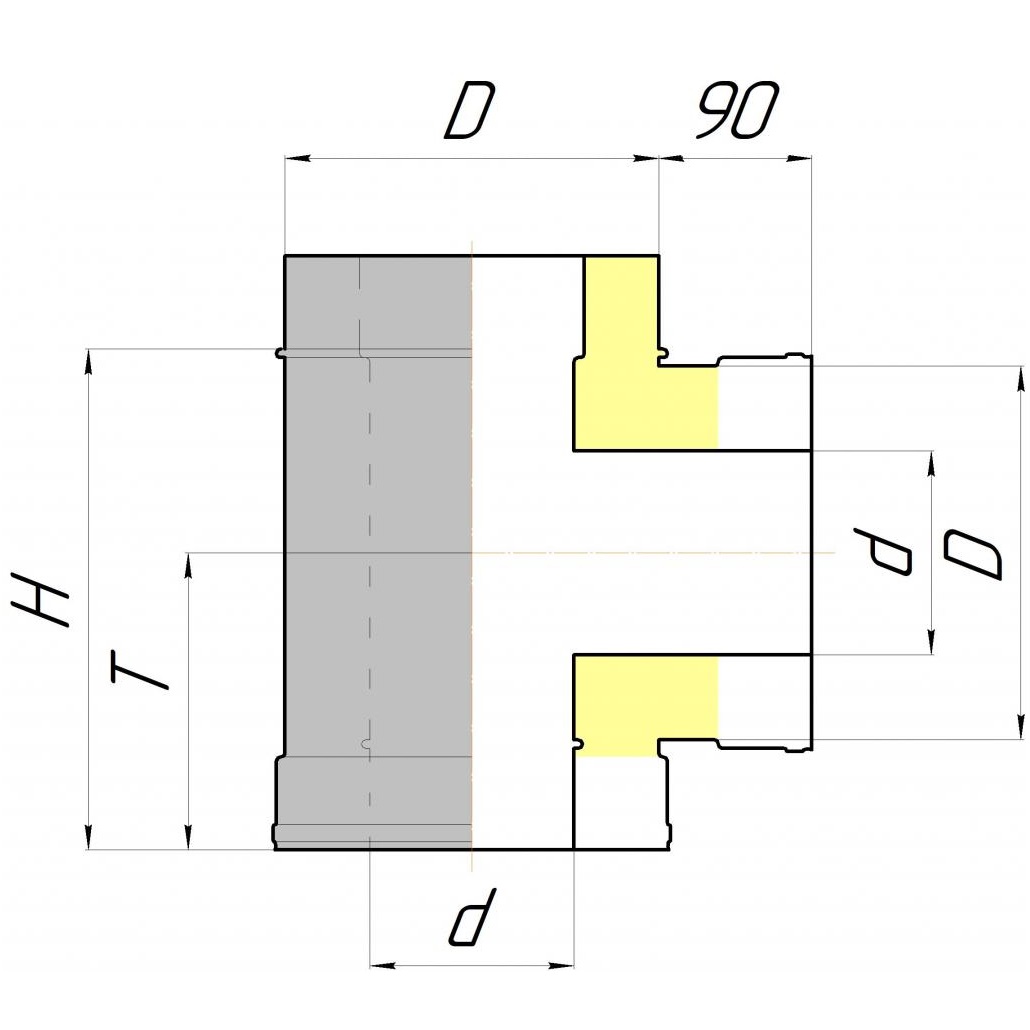 Тройник двустенный 90° ТТИ 90 производства «КДМ» выполнен из легированной титаном нержавеющей стали марки AISI 439TI, толщиной 1мм, которая обладает жаростойкими, антикоррозионными и кислотостойкими свойствами. Ее применение делает дымоход «КДМ» абсолютно надежным и долговечным, рекомендованным для применения в банных и отопичельных печах, каминных топках, а также твердотопливных котлах.