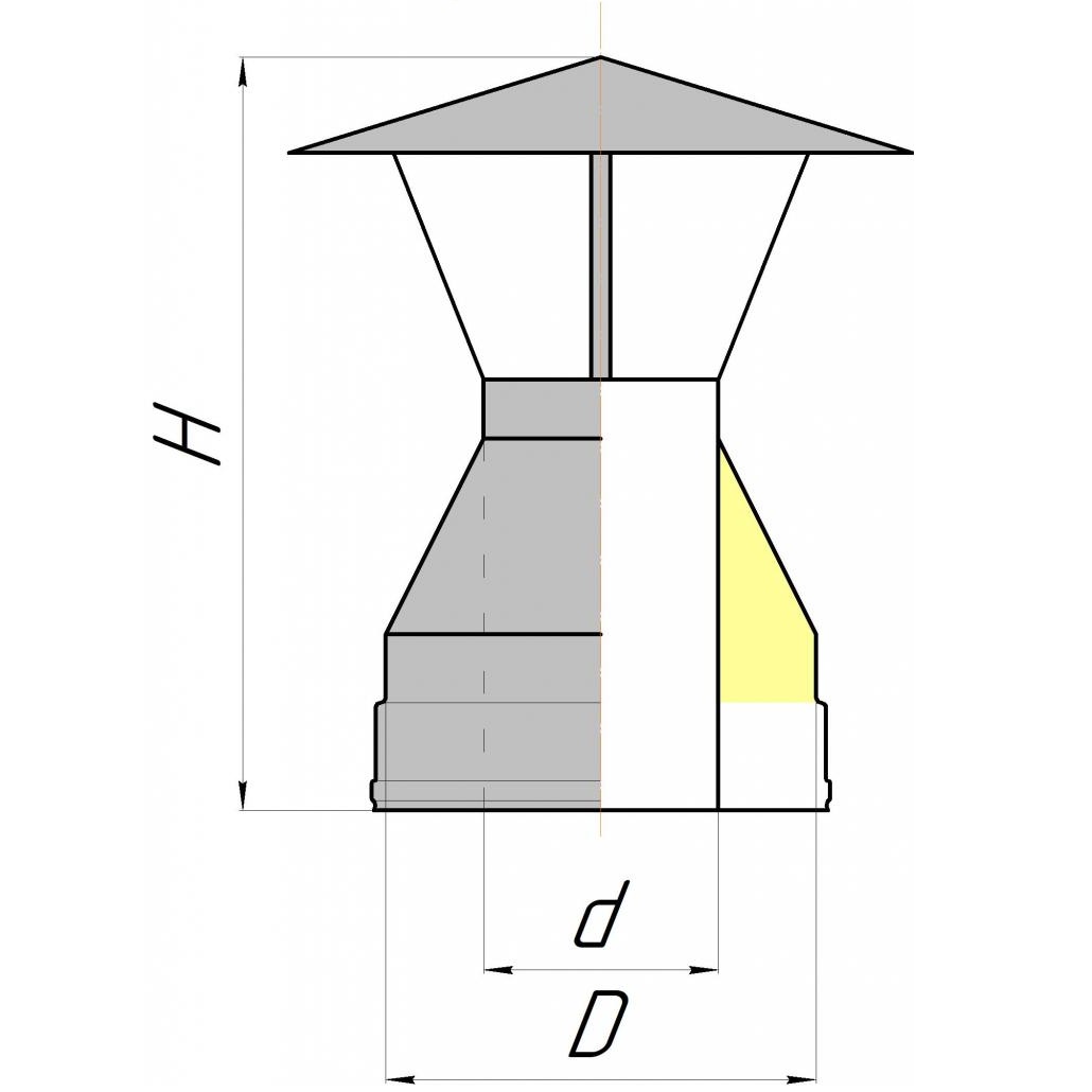 Конические окончания с флюгарком (зонтом) «КДМ» изготовлены из листовой нержавеющей стали, сваренной с помощью высокоточного автоматизированного оборудования, работающего по технологии TIG-сварки. Это оборудование производит сварку труб с использованием нержавеющей кислотостойкой стали марки AISI 304, в среде инертного газа - аргона, что исключает окисление металла.