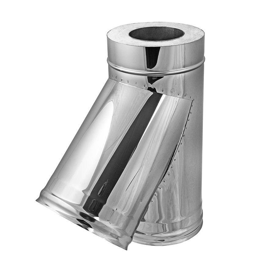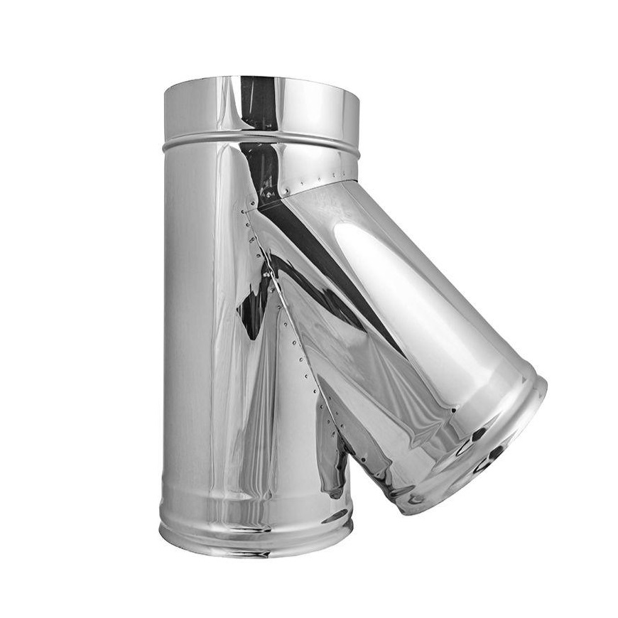 Тройник двустенный 45° ТТИ 45 производства «КДМ» выполнен из легированной титаном нержавеющей стали марки AISI 439TI, толщиной 1мм, которая обладает жаростойкими, антикоррозионными и кислотостойкими свойствами. Ее применение делает дымоход «КДМ» абсолютно надежным и долговечным, рекомендованным для применения в банных и отопичельных печах, каминных топках, а также твердотопливных котлах.