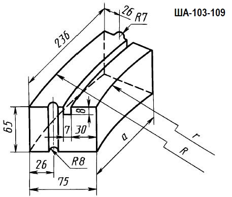 Линейные размеры кирпича ША-104 - 235х188х75х65 мм.