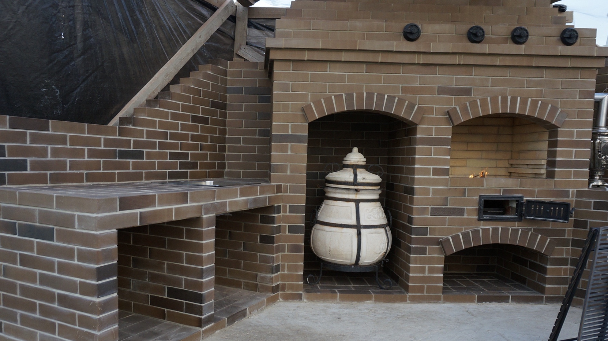 ⋅ Благодаря высокой морозостойкости F100 и механической прочности М300 Кирово-Чепецкий кирпич применяют в наружных работах: строительстве уличных печных комплексов барбекю для приготовления пищи, облицовке домов, строительстве заборов и других сооружений.