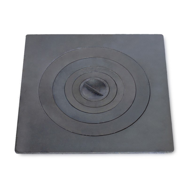 Плита под казан П1-6 габаритным размером 600х600 мм выполнена из чугуна. Производитель Балезинский литейно-механический завод. Имеет круги различного диаметра, т ч подойдет для многих казанов объемом до 20л. Служит для приготовления пищи на огне.