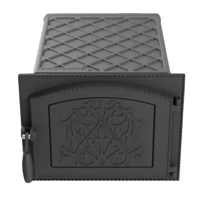Комплектация: Дверка каминная герметичная ДКГ- 2А, с чугунной вставкой "Василиса", чугунный корпус духовки из двух боковых стенок, нижней и верхней стенки, стальная решетка