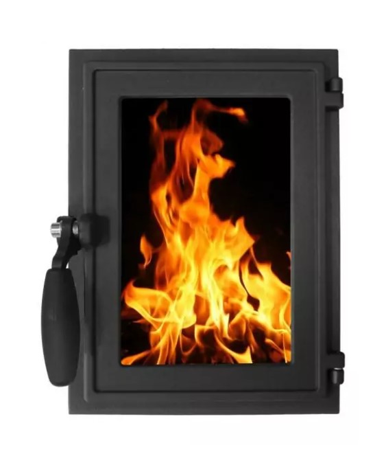 Крышка дверки оснащена термостойким стеклом, которое позволяет контролировать процесс горения, не открывая крышку. Крышка дверки и стекло оснащены термостойкими шнурами, которые предназначены для герметичного запирания крышки и уплотненного прилегания стекла, что исключает подсос воздуха