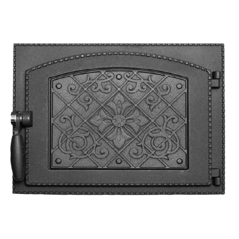Дверка топочная каминная. Изготовленная нами чугунная дверка имеет все необходимые характеристики для придания Вашему камину (печи) изысканного вкуса. В данном изделии продумано до мельчайших подробностей все, чтобы Ваш камин (печь), а в целом и дом стали более уютными и красивыми.  Классическая прямоугольная форма декорирована орнаментом в виде косички, а художественное литье, выполненное на лицевой поверхности дверки, придает изделию более живописный вид. При проектировании данного изделия, мы позаботились о том, чтобы оно легко монтировалось в печь, чтобы вы могли выбрать удобную для вас сторону для открывания. А благодаря втулке с двойным буртиком появилась возможность открывания дверки с небольшим зазором с гарантией безопасности (при нехватке воздуха необходимого для горения топлива). Расширенная поверхность внутреннего проема дверки (по сравнению с обычными топочными дверками) облегчает загрузку топлива и чистку камина (печи).