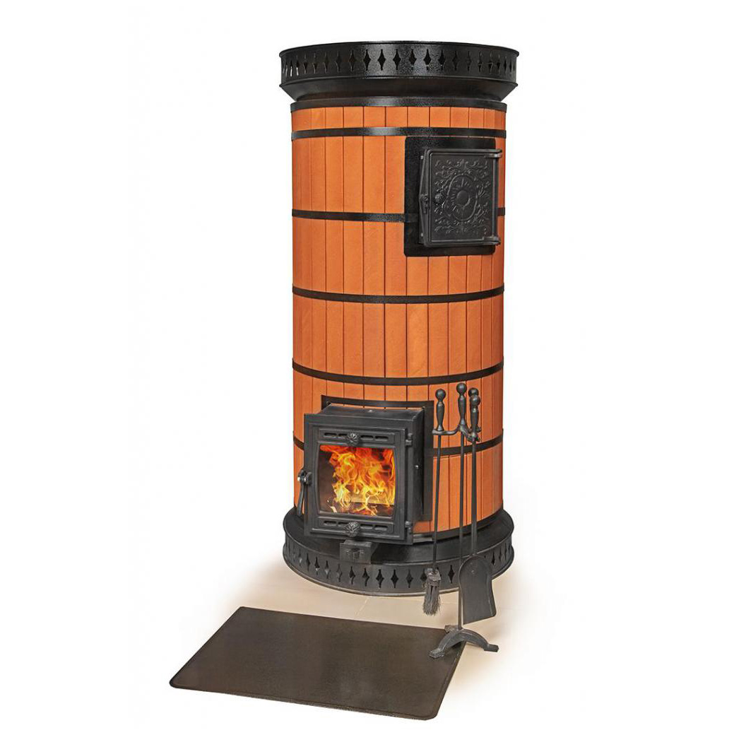 Круглая форма и система подачи вторичного воздуха обеспечивают равномерный прогрев по всей поверхности печи. Основание стоит на шанцах, благодаря чему, тепло не уходит в фундамент