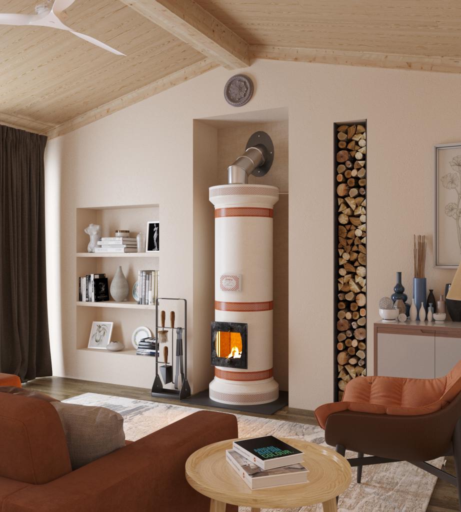 Быстро нагревается, оборудована системой подачи вторичного воздуха. Высокая теплоёмкость. Достаточно двух топок в сутки