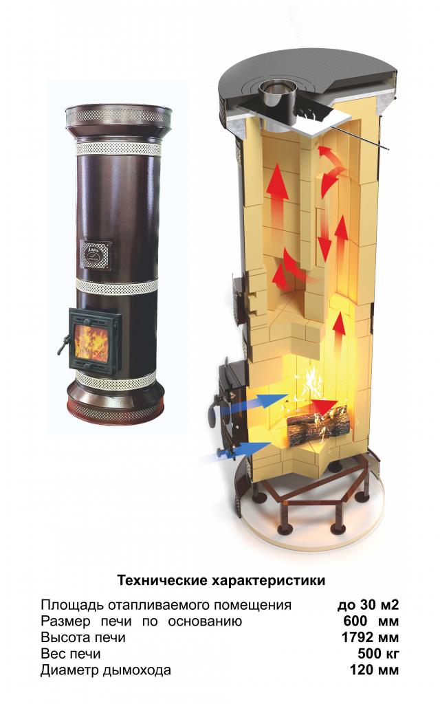 Печь круглая отопительная
