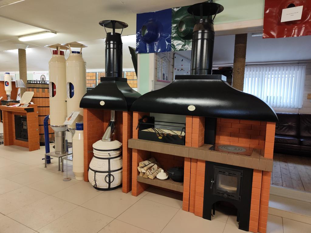 Конструкция мангала даёт равномерное горение углей. Жаростойкий кирпич накапливает тепло, регулируется высота рамки под шампура