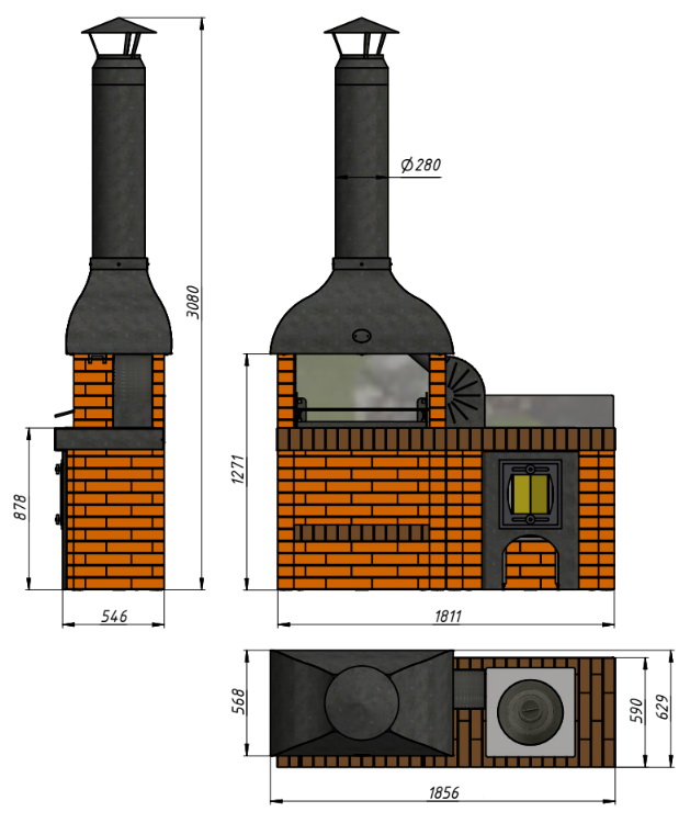 Встраивается в открытые проветриваемые помещения (под навес или в беседку). Модуль должен быть защищен от прямого попадания атмосферных осадков (дождь, снег). Дымоход может доукомплектовываться добором по высоте