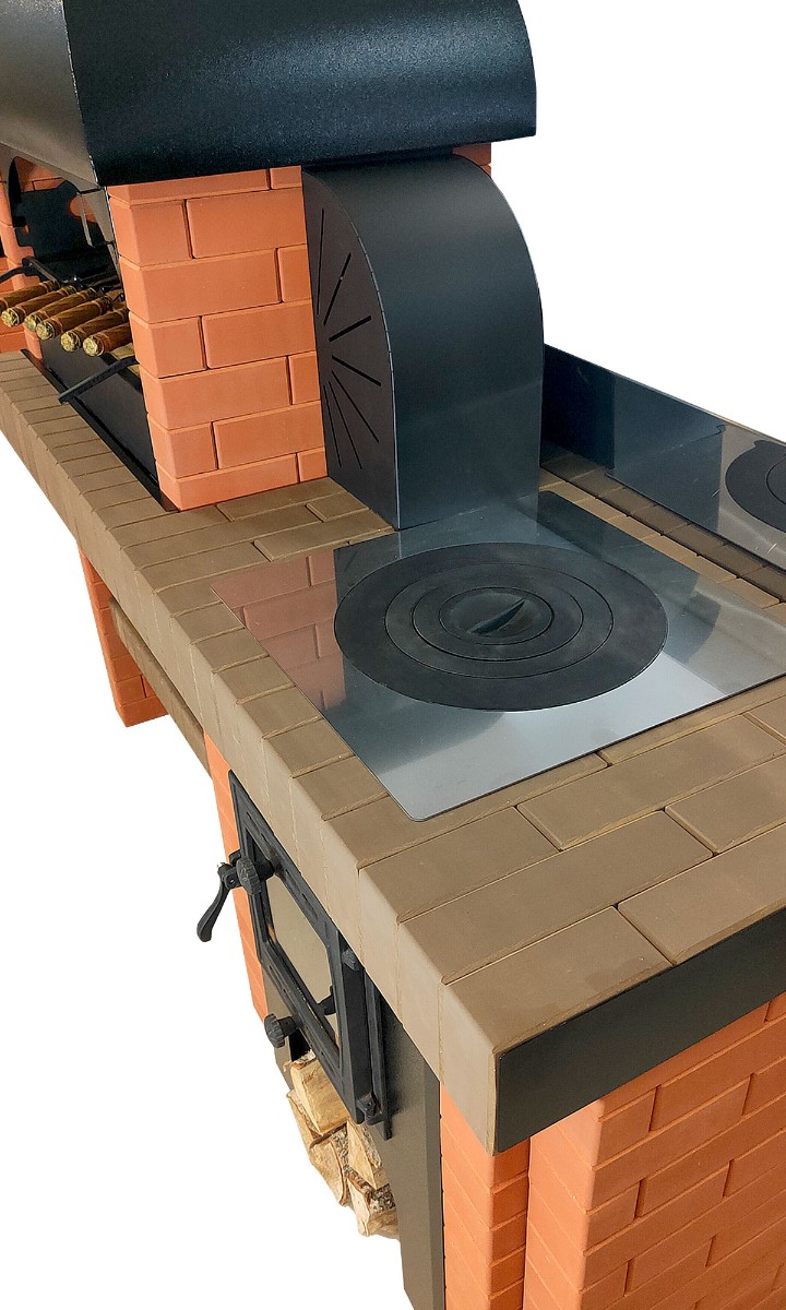 Комплекс создаст полноценную зону для приготовления различных блюд: шашлыков, овощей на гриле, плова и многих других вкусностей. Модуль «Казан+Мангал ЛАЙТ» может использоваться как самостоятельно, так и в сочетании с другими модулями барбекю КДМ (Стол, Мойка, Помпейская печь и др.)