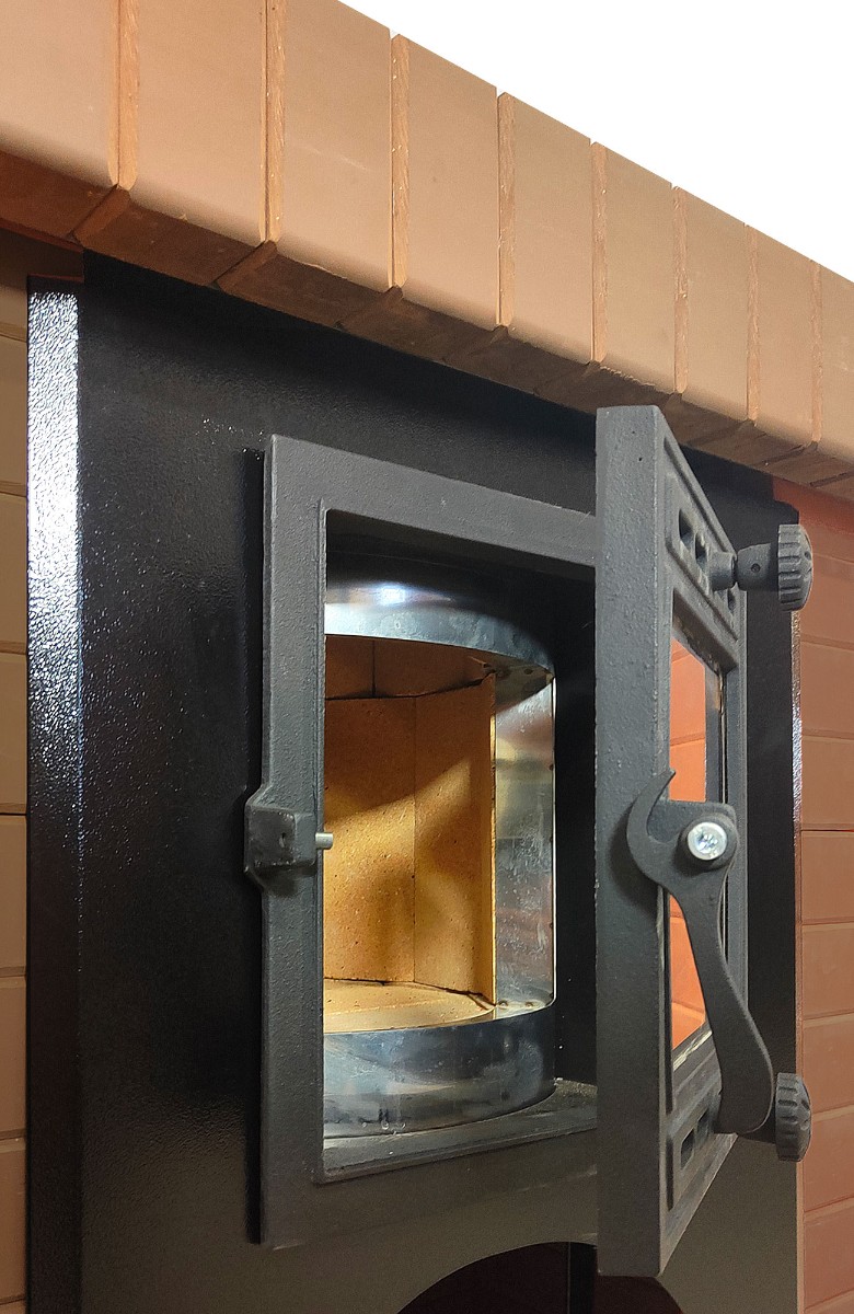 Стекло на дверке топки защищено от копоти и сажи, благодаря специальной конструкции топочной дверки