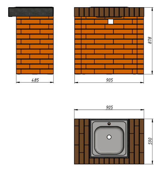 * в готовом изделии допускается наличие незначительных сколов до 3 кв.мм на кирпиче, волосяные трещины, перепад в размере кирпича 2-3 мм.