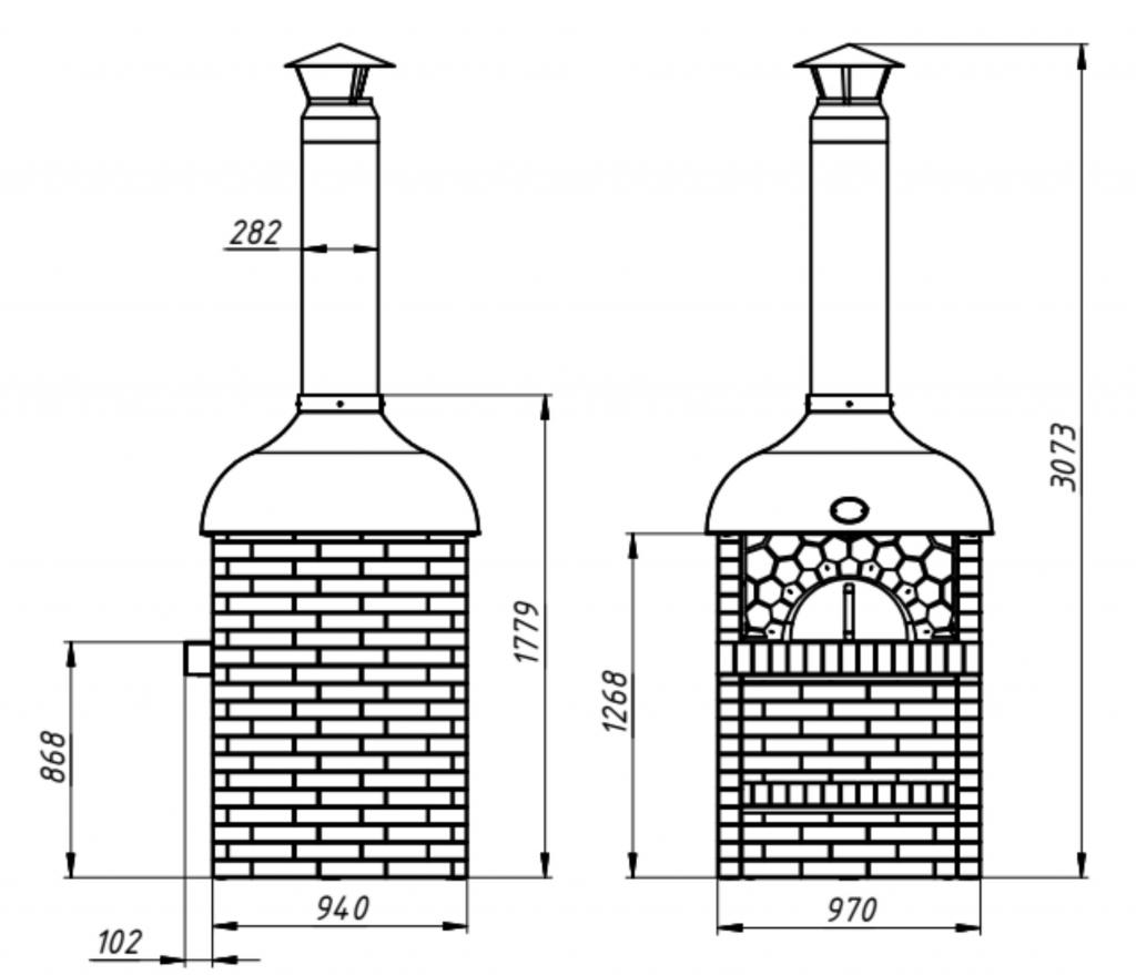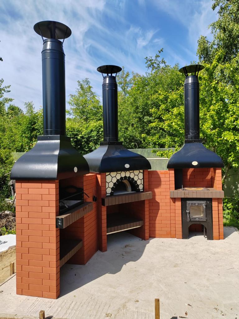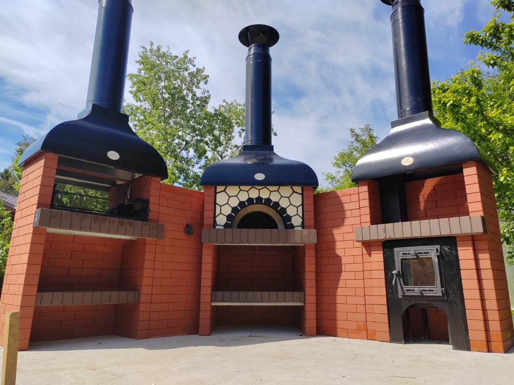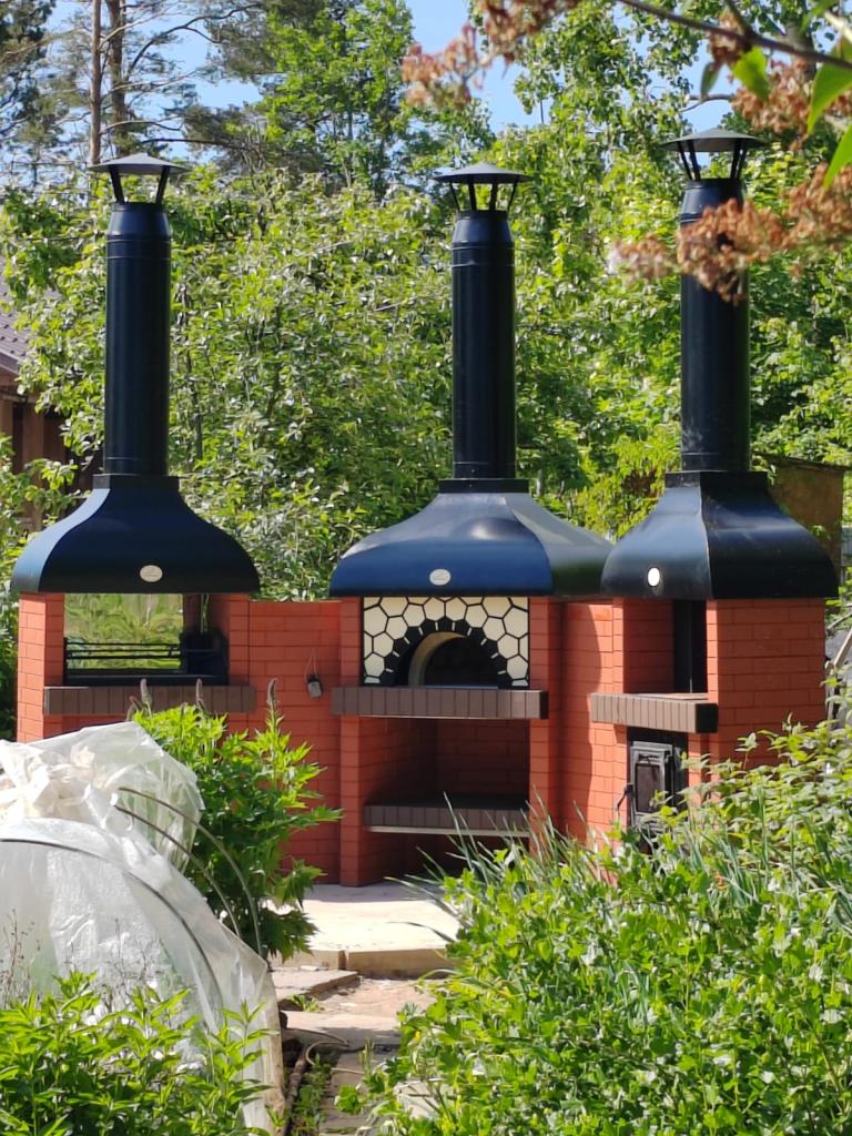 В печи можно готовить пиццу, разные виды выпечки, мяса и все классические рецепты для русской печи. Работает на дровах. Идеальная зона барбекю