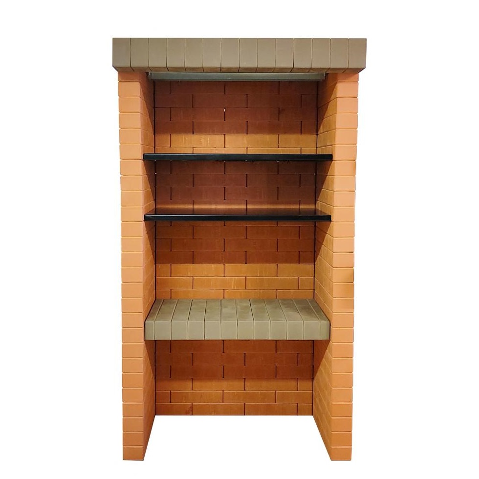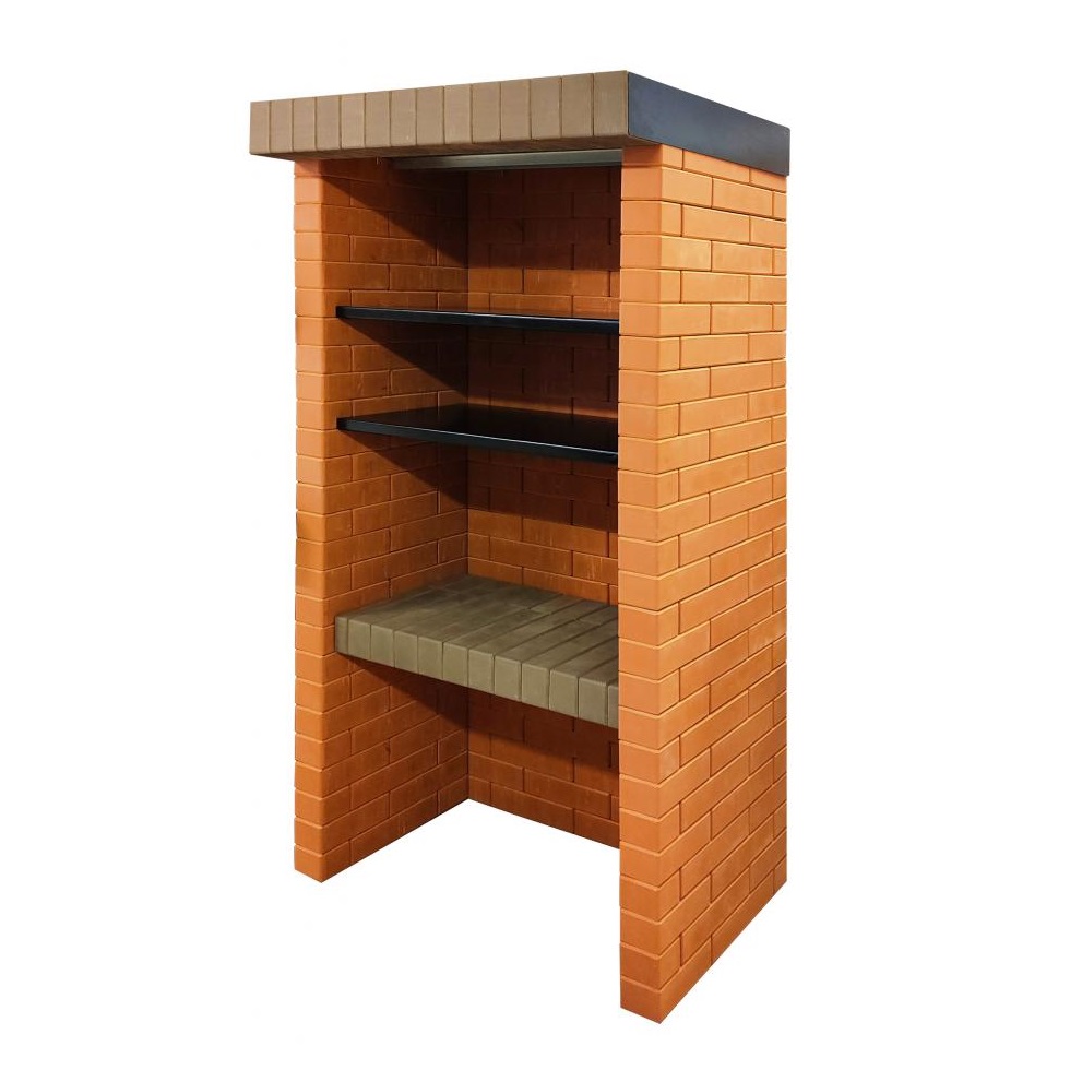 Собирается как конструктор, даже новичок соберёт за 2 часа. В инструкции дана пошаговая установка. Все детали пронумерованы и подогнаны – состоит из готовых кирпичных блоков и фурнитуры из металла. Возможна установка и на фундамент, и на брусчатку
