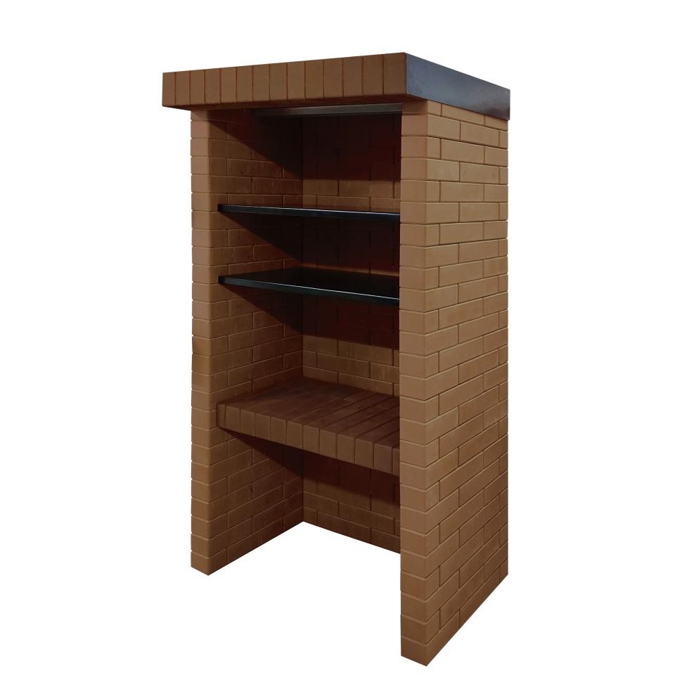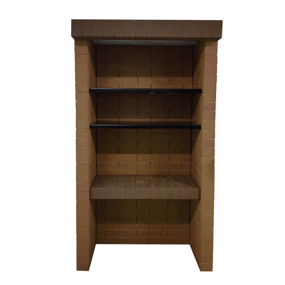 Собирается как конструктор, даже новичок соберёт за 2 часа. В инструкции дана пошаговая установка. Все детали пронумерованы и подогнаны – состоит из готовых кирпичных блоков и фурнитуры из металла. Возможна установка и на фундамент, и на брусчатку