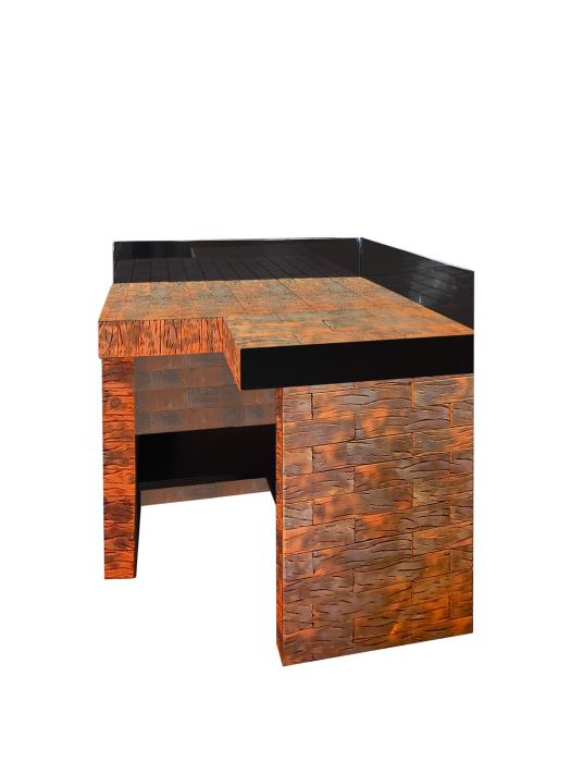 Модуль «Стол угловой» может использоваться в сочетании с другими модулями из серии Уличный комплекс КДМ (Мангал, Мойка, Казан)