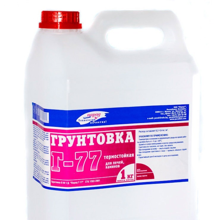 В составе термостойкой грунтовки Г-77 вместо обыкновенных масел, смол и клеев входят компоненты, устойчивые к повышенным температурам. Это позволяет подготавливать печи, камины, уличные комплексы для декоративной отделки, более того, нанесение высокотемпературной грунтовки создаст последующее покрытие ровным, без трещин и сколов.