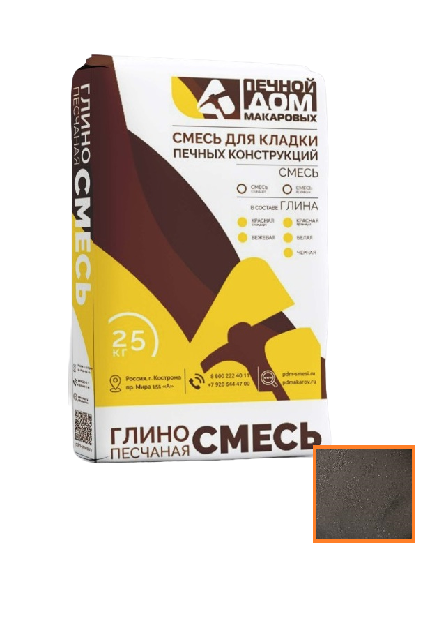 Глино-песчаная смесь для кладки печей и каминов Печной дом макаровых черный цвет в Минске. Печная смесь черных оттенков производится на основе серой глины.