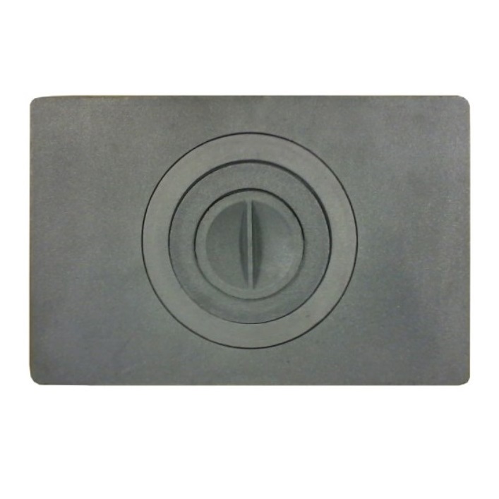 После установки плит на печи, необходимо медленно их нагреть со скоростью 70-80*С в час, т.е. до 560-640*С, в течение 8 часов. Затем оставить остывать печь до полного перегорания топлива. Такой отжиг снимает внутреннее напряжение, исключает коробление и образование трещин в процессе эксплуатации. Плита на одну конфорку. Выполнена из серого чугуна. Хорошо подходит для небольших варочных печей. Кружки конфорок классические.