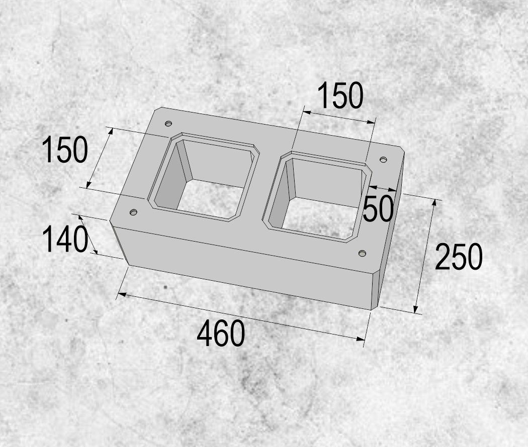 Данный блок применяется для возведения дымовых труб, позволяет сократить время строительства дымохода и увеличить безопасность конструкции. Толщина стенки, согласно СП 7.13130 п.5.11 для дымовых труб из жаропрочного бетона, выполнена не менее 60 мм. Блок БТ-15/15 имеет два внутренних канала размером 150х150 мм.